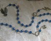 Prayer beads for the Greek god Zeus, made with deep blue Czech fire-polished beads and three pendants representing the god: the lightning, the eagle, and the scales of justice.