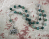 Pocket prayer beads for the Gaulish Celtic god Cernunnos, made with dark green Czeck fire-polished beads and an antler pendant.