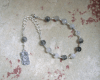 Pocket prayer beads made with turquoise and black Czech fire-polished beads and a Nile goddess pendant.